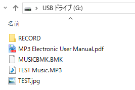 オーディオプレーヤーをパソコンに接続すると認識された。初期は以下のようなファイル構成であった。